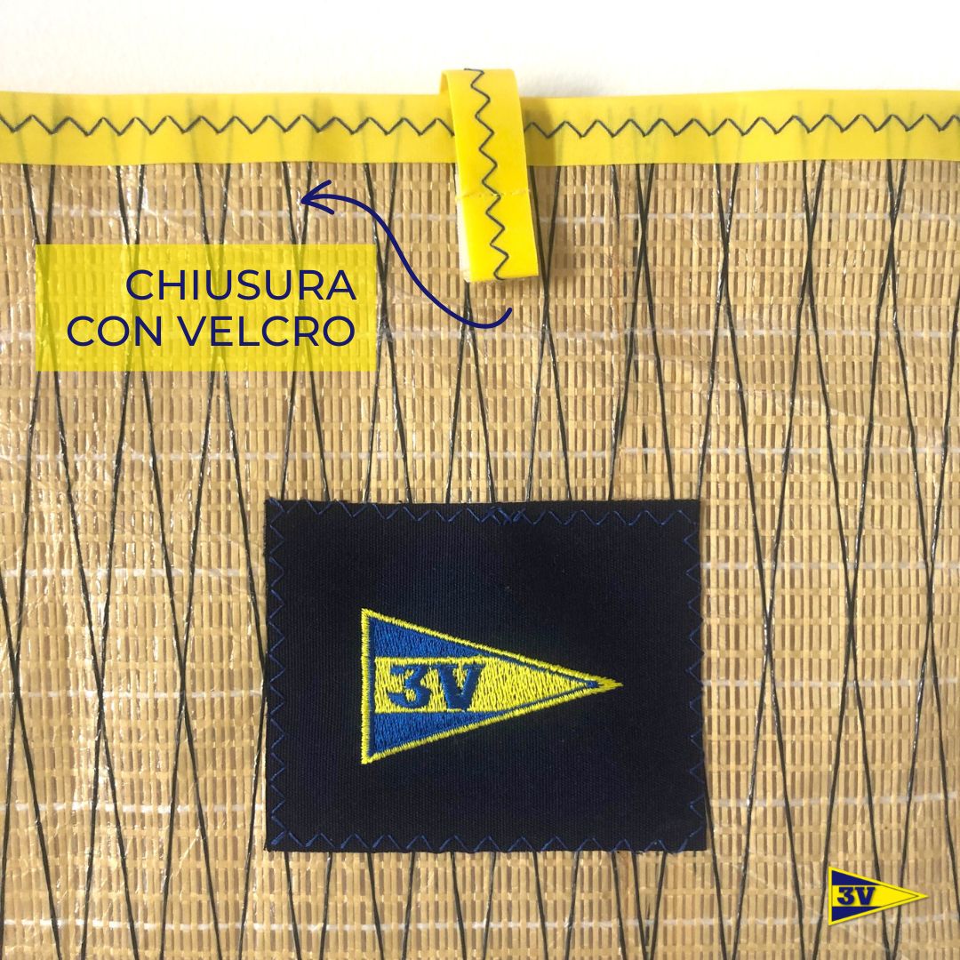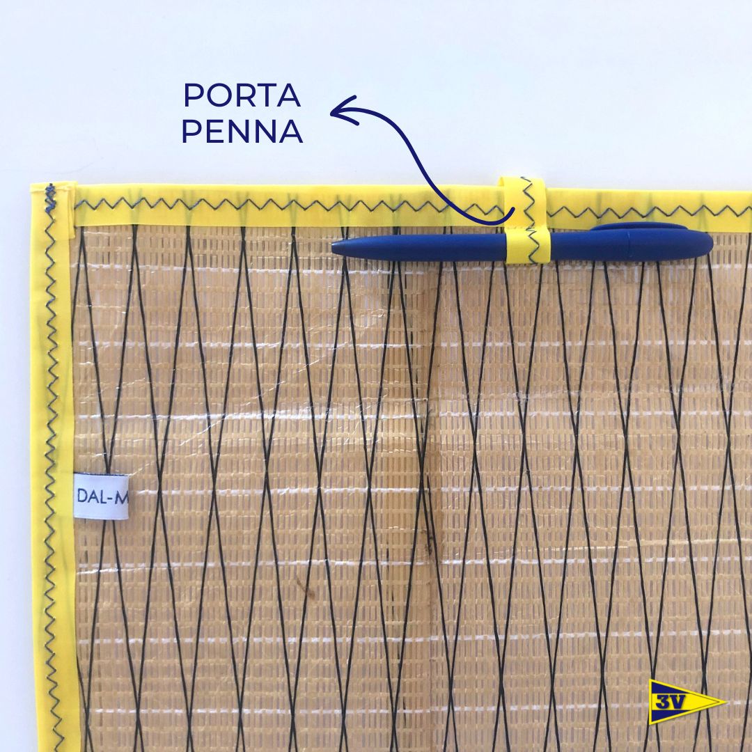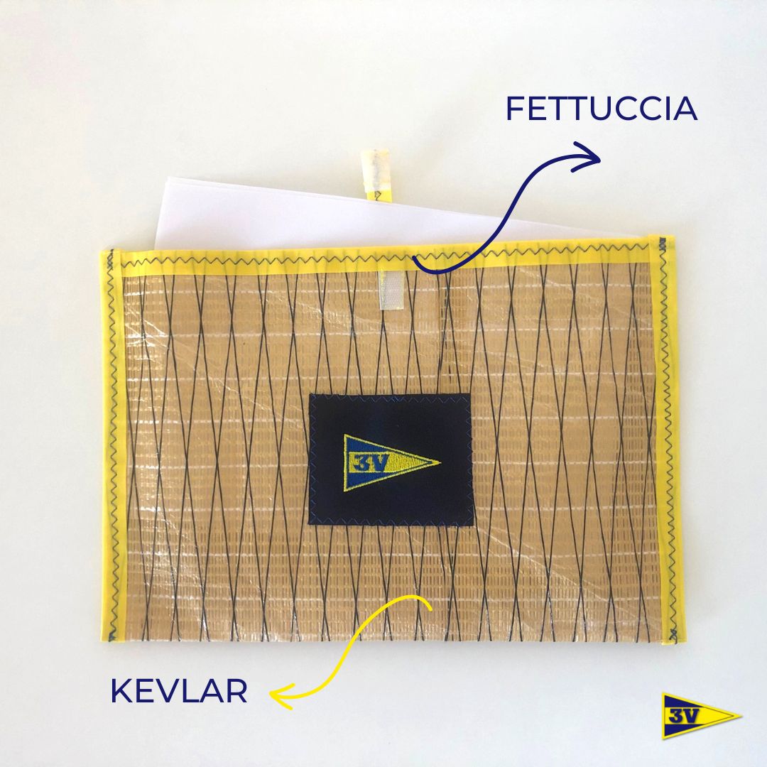 Cartellina porta documenti realizzata totalmente a mano in materiale velico (kevlar), in formato A4 con pratica chiusura con velcro e porta penna.